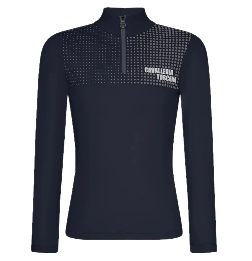 Тренувальне зимове поло для дівчаток розроблене для забезпечення оптимального комфорту та продуктивності під час занять кінним спортом у холодному кліматі. Виготовлене з високоякісної технічної трикотажної тканини, це поло забезпечує тепло та повітропроникність. Конструкція має центральну гумову напівблискавку, яка полегшує надягання та регулювання температури під час інтенсивних тренувань. Рельєфний силіконовий логотип Cavalleria Toscana, розташований на грудях, надає відмінного та вишуканого вигляду. Цей простий у догляді одяг ідеально підходить для тих, хто шукає найкраще з погляду якості та дизайну під час щоденних тренувань.