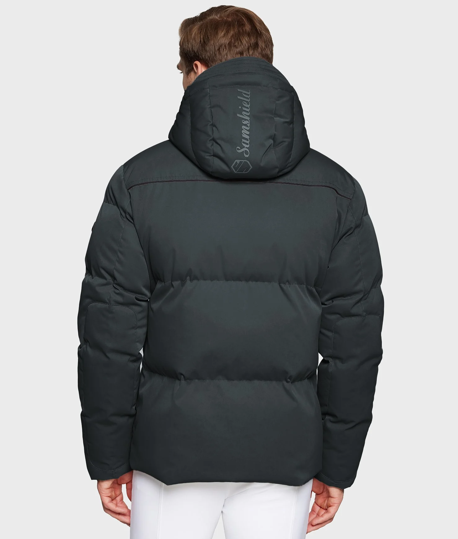 Логотип Samshield з матового металу на плечі та логотип тон у тон зі штучної шкіри на капюшоні