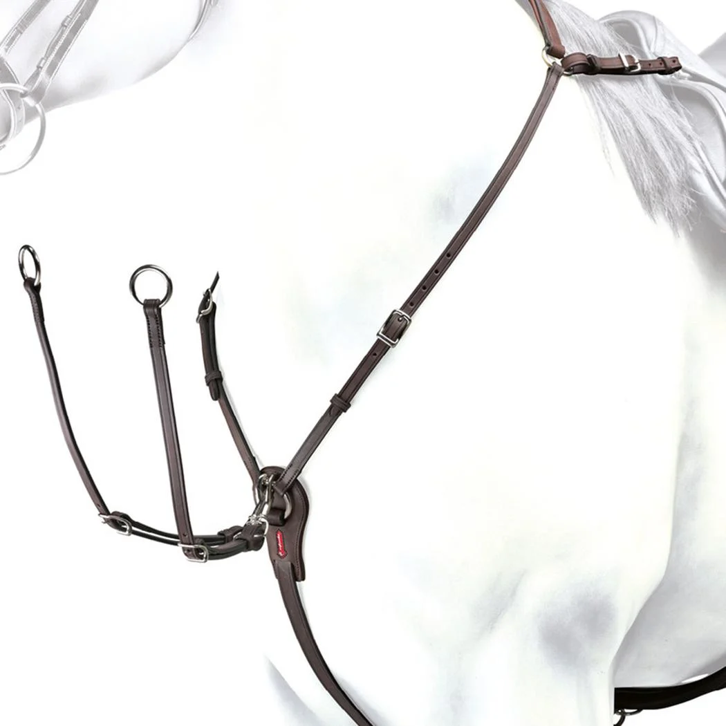Шкіряний мартингал з кріпленням на сідлі, кріпиться до D-подібного кільця на сідлі та до підпруги. Пряжки із нержавіючої сталі.