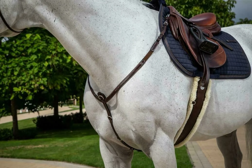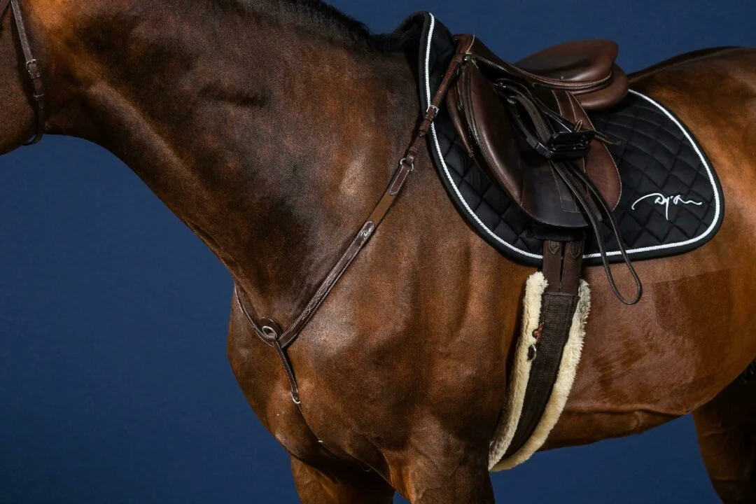 Підперстя шкіряне, декороване логотипом Dyon та вишивкою кремового кольору