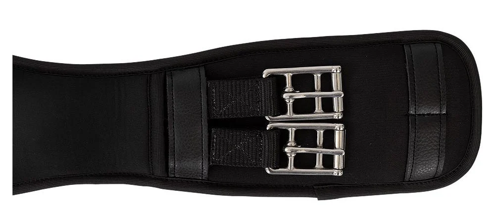Підпруга має тришарову резинку з обох боків та міцні роликові пряжки.